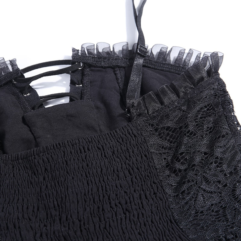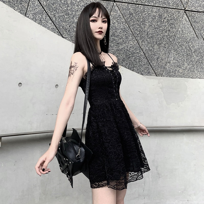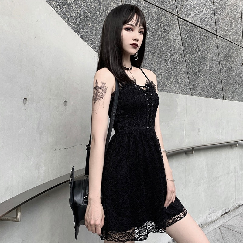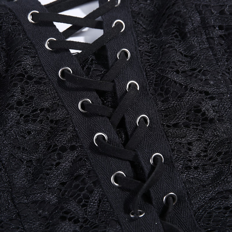 Avere uno stile gotico in piena estate? È possibile. Lasciati sedurre dal fascino dell'abito gotico in pizzo che ti accompagnerà con il bel tempo. Per avere uno stile gotico che ti valorizzi, questo abito è stato appositamente realizzato per essere bello e originale. Il laccio che percorre la parte anteriore dell'abito ti permetterà di adattarlo perfettamente alla tua morfologia.