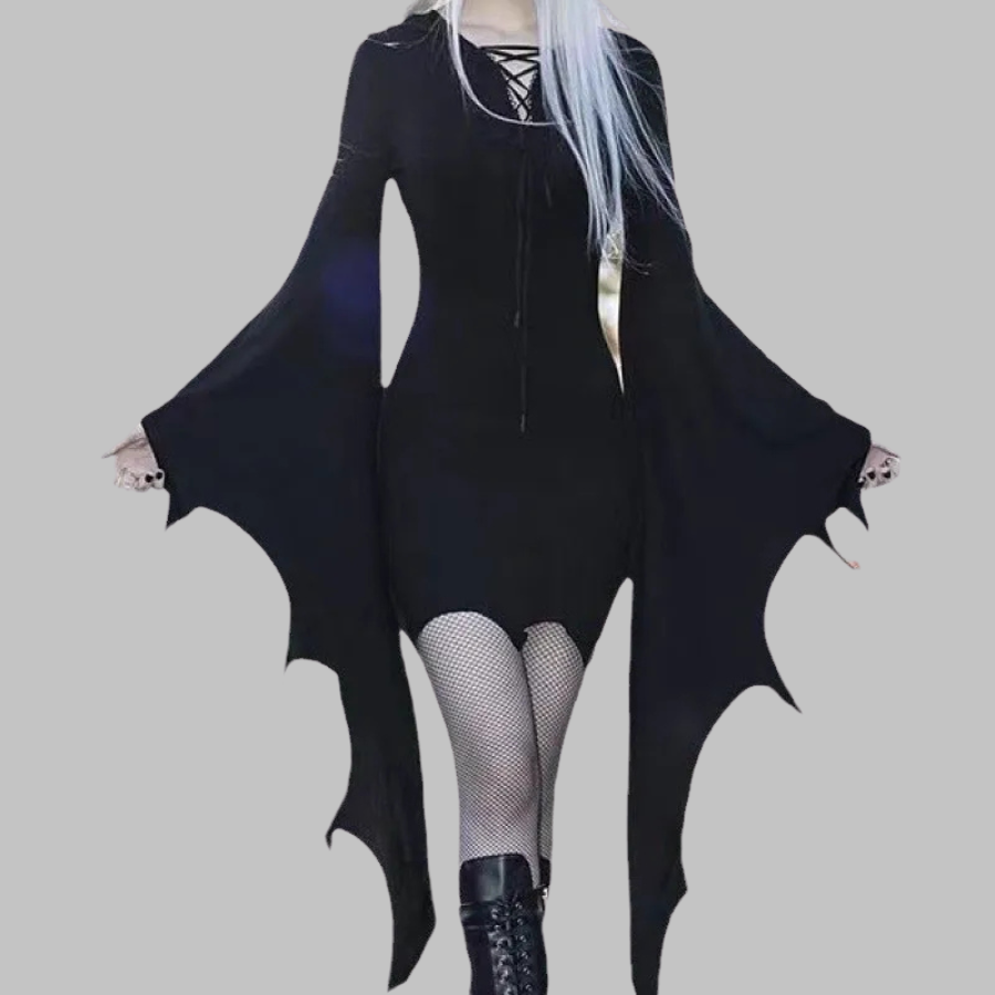 Abito Gotico Nero Pipistrello con Maniche Alate