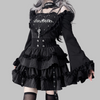 Abito Gotico Nero Vittoriano con Volant e Maniche Lunghe