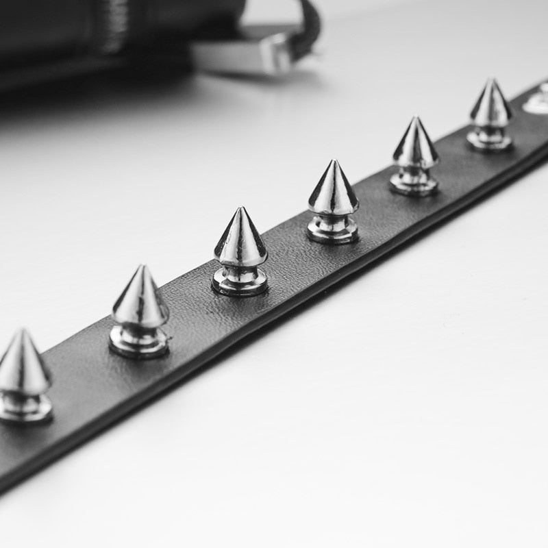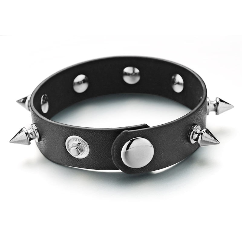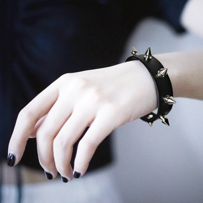 Il bracciale a punta gotico presenta il vantaggio di essere un gioiello emblematico della moda alternativa goth, punk, rock e altro. Le sue punte di metallo sono di colore argentato e di forma conica. Il contrasto tra nero e argentato lo rende un gioiello visibile che sottolinea lo stile.