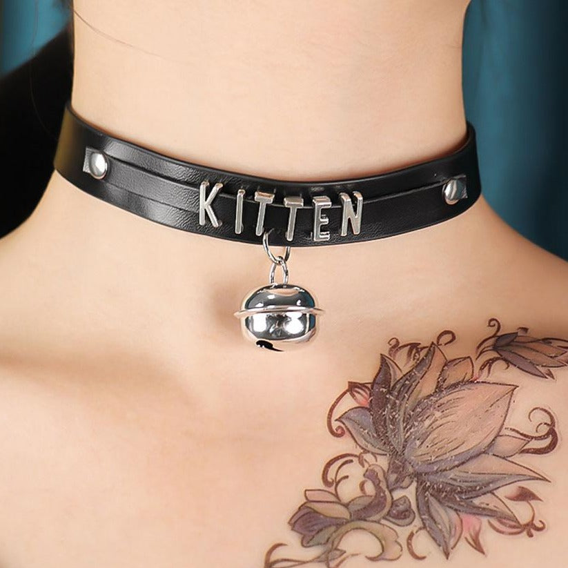 Questi collari lettera hanno una forma girocollo . Sono facili da mettere e togliere, e piacevoli da indossare. La loro circonferenza è regolabile grazie a bottoni di metallo. È stato aggiunto un tocco personale: un campanellino metallico.