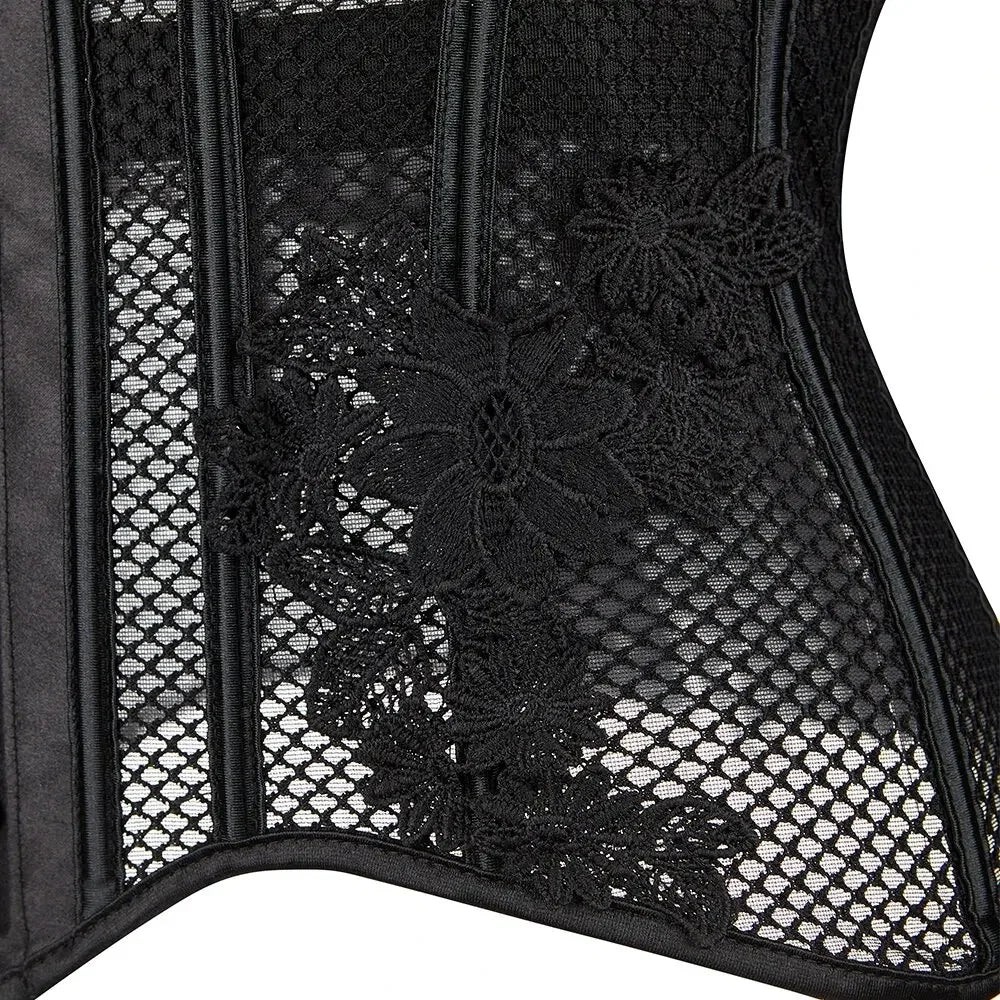Corsetto Gotico Nero in Pizzo con Inserti in Mesh per Donna