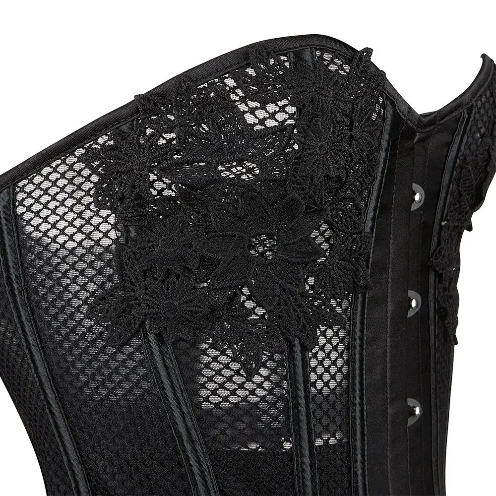 Corsetto Nero Gotico in Pizzo con Inserti in Rete per Donna XXL