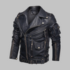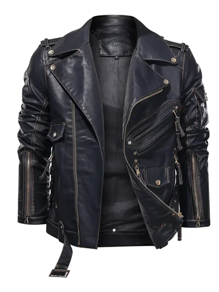 Giacca da motociclista nera in pelle sintetica stile rock per uomo