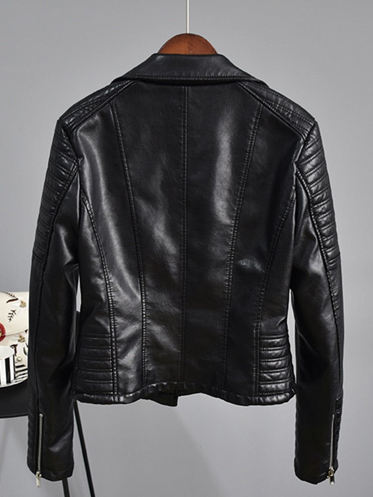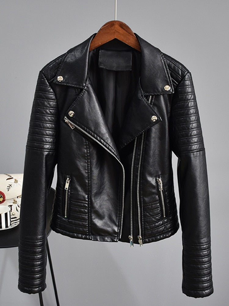 • Comfort ed Eleganza: Realizzata con materiali di alta qualità, tra cui PVC, ecopelle e PU, questa giacca combina comfort ed eleganza. Il suo colletto ripiegato e la chiusura lampo offrono protezione dagli elementi aggiungendo un tocco di fascino oscuro.