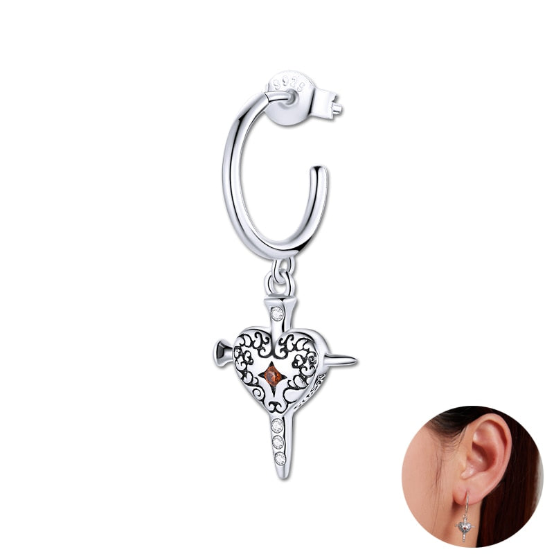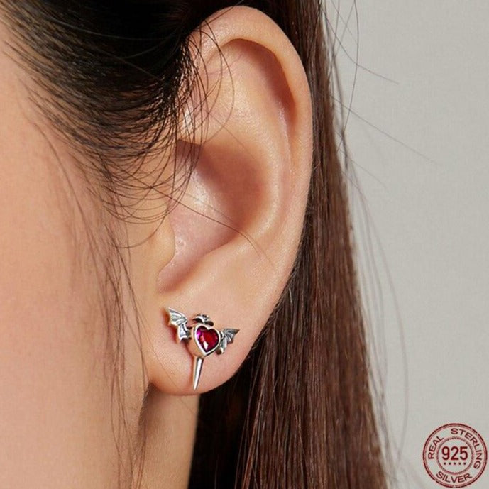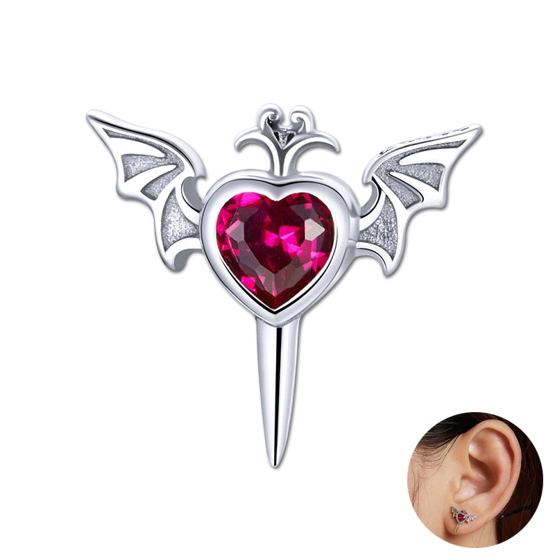 Gli orecchini in argento 925 sterling si distinguono per la forma che possiedono. Infatti, questo gioiello adotta la forma di un cuore alato ornato di una punta. Sono anche decorati con una pietra di colore rosa.