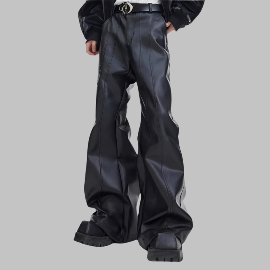 Pantaloni a zampa in similpelle nera stile punk da uomo