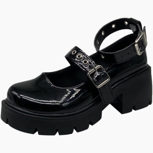 Scarpe con Zeppa Gotiche Nere Lucide