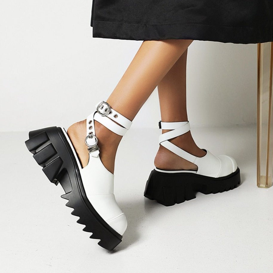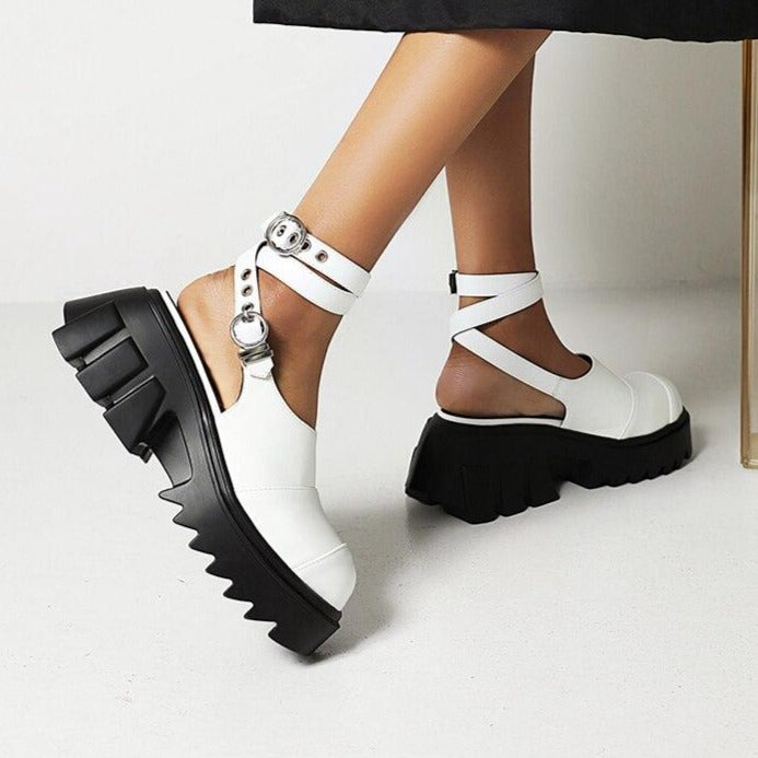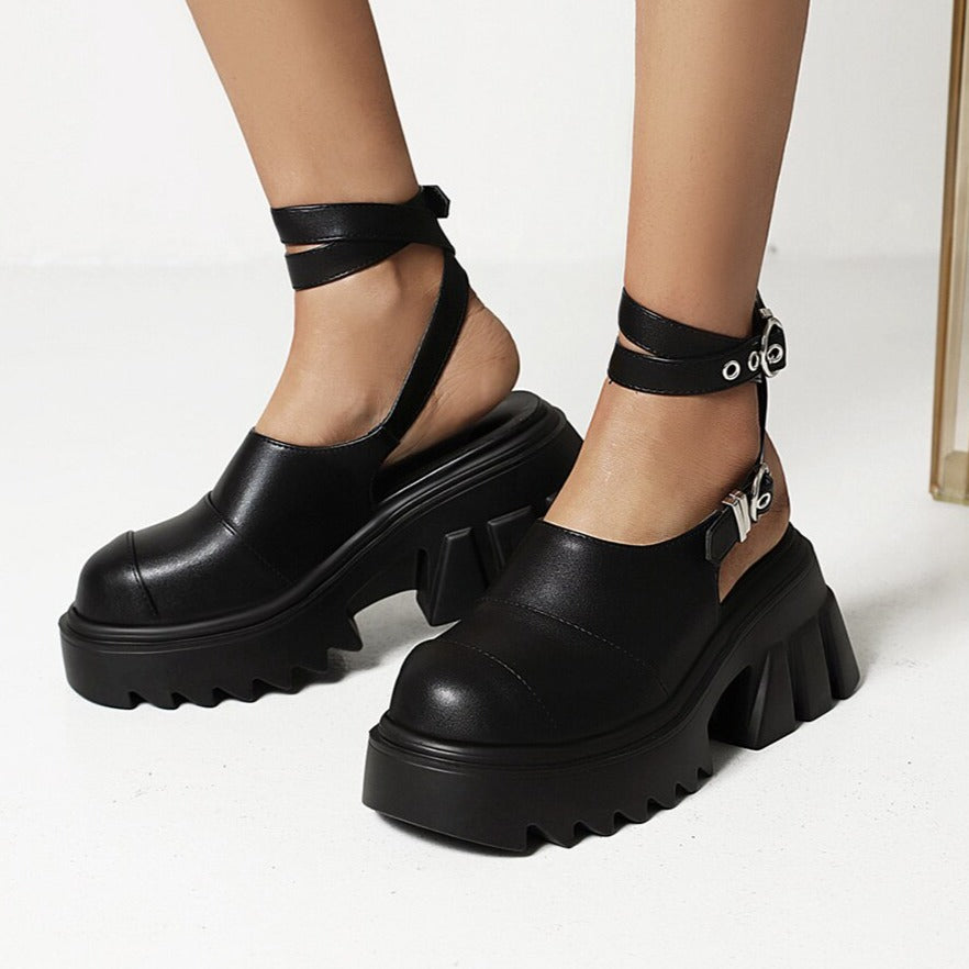 Le scarpe gotiche con zeppa hanno la particolarità di creare un effetto di altezza grazie alla loro ampia suola ben fissata alla scarpa. Inoltre, affinché lo stivaletto rimanga perfettamente durante la camminata quotidiana, una cinghia in similpelle è incastonata a livello della caviglia. Il suo design è originale e si abbina molto bene con abiti gotici.