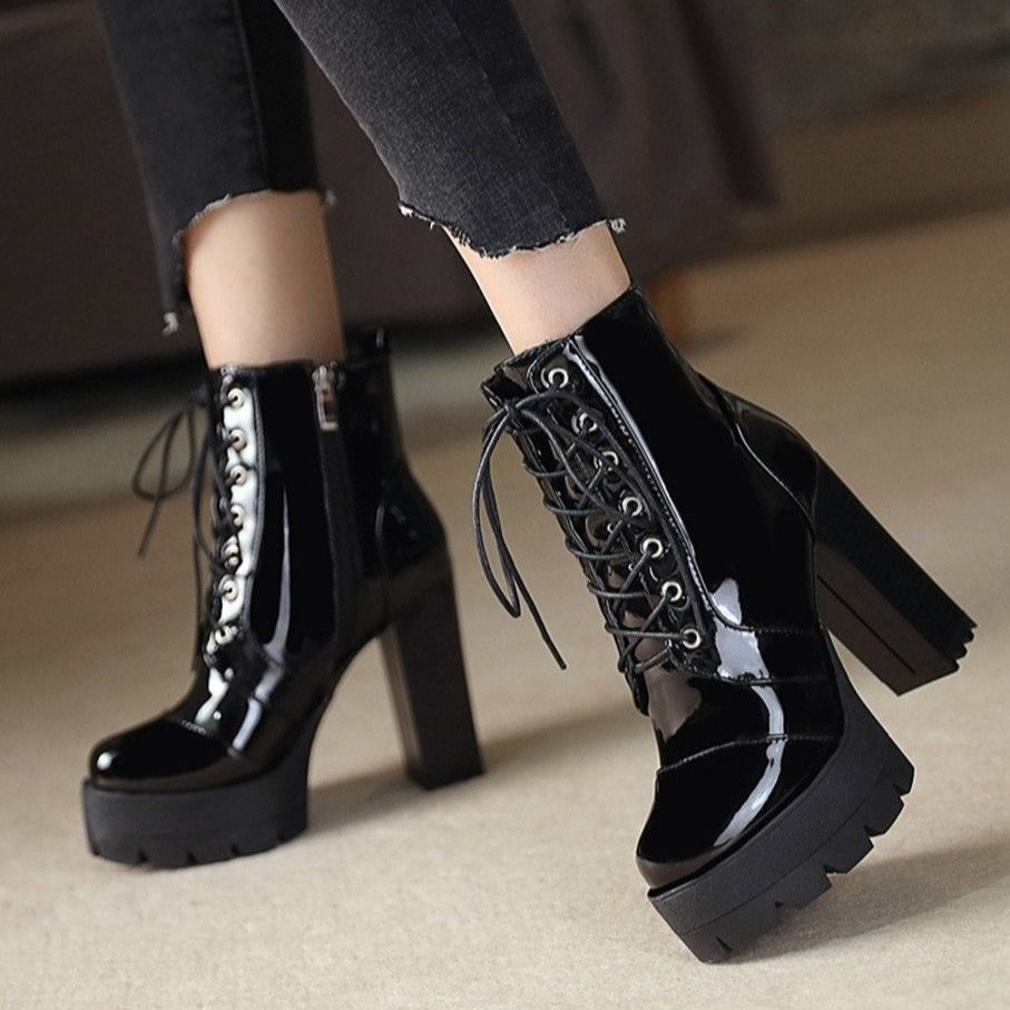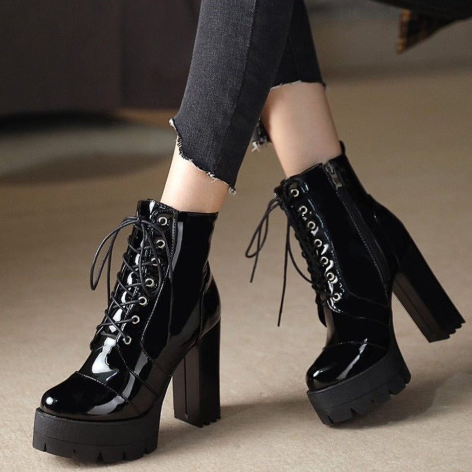 Per poter sfoggiare uno stile scuro, elegante e senza tempo, questo paio di scarpe gotiche stivaletti è stato realizzato con un materiale liscio e solido. Inoltre, possiede tacchi alti, il che ti permetterà di guadagnare una decina di centimetri in più valorizzandoti.