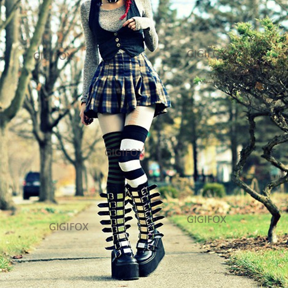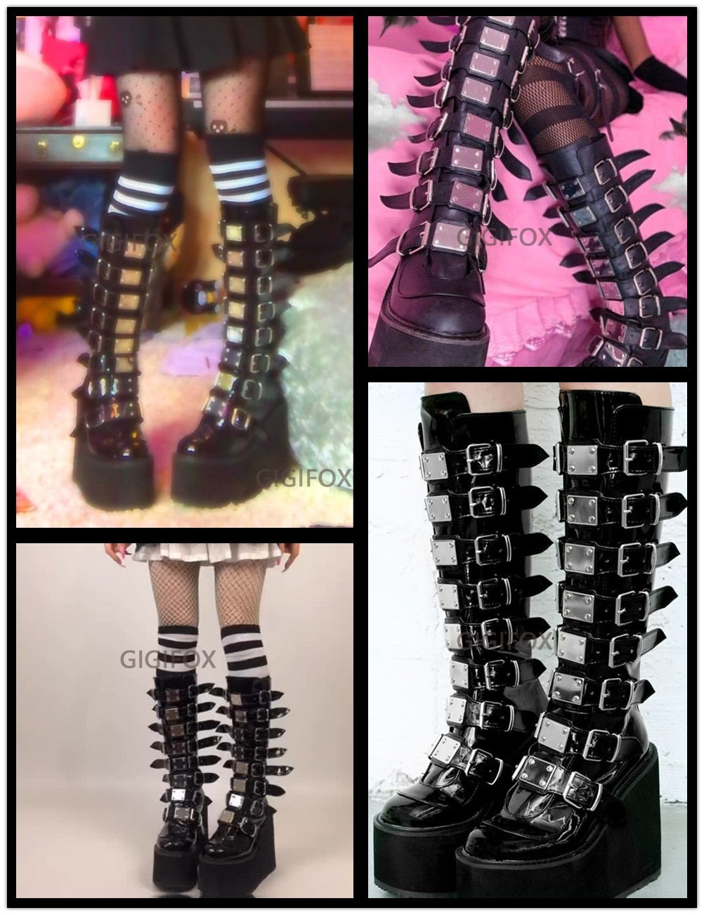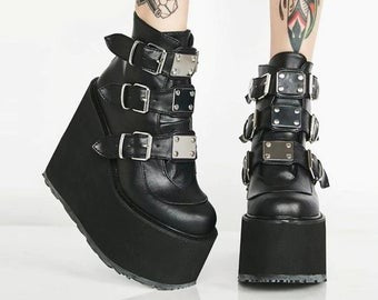 Per avere un vero look alternativo dark, gli stivali con zeppa in stile goth possiedono una moltitudine di cinghie con un pezzo di metallo, che aggiunge un tocco di audacia al tuo abbigliamento. Inoltre, è un modo perfetto per avere tutta la lunghezza dello stivale stretta. Ha anche suole con zeppa spesse 6 cm, il che è perfetto per guadagnare in altezza e non consumarsi nel tempo.