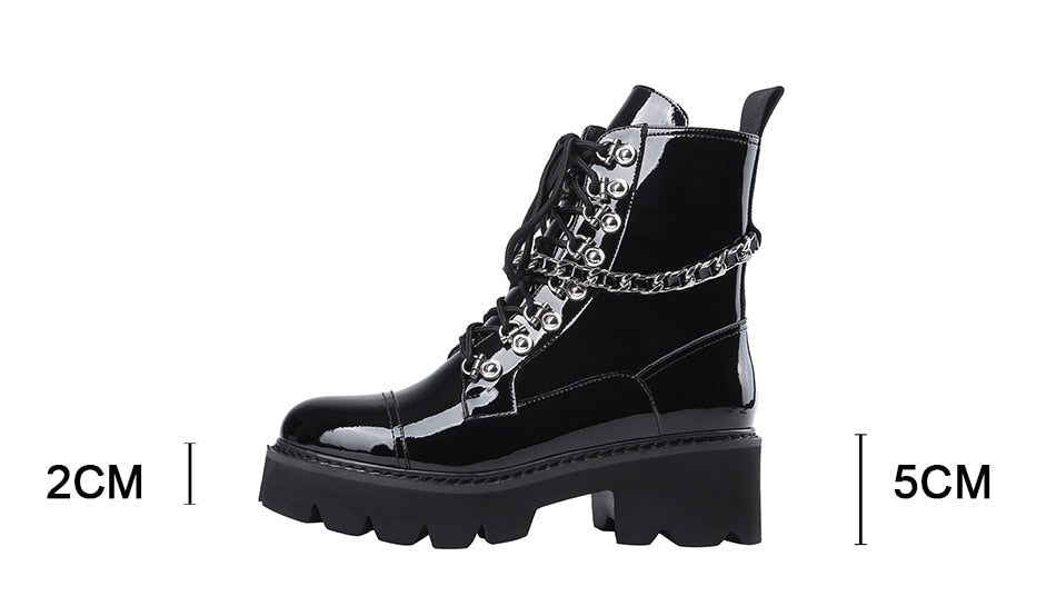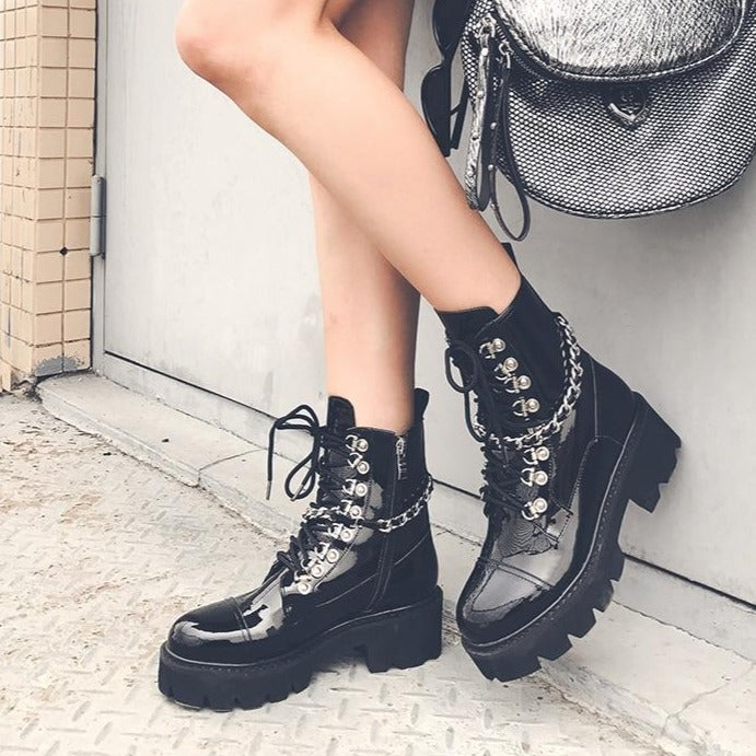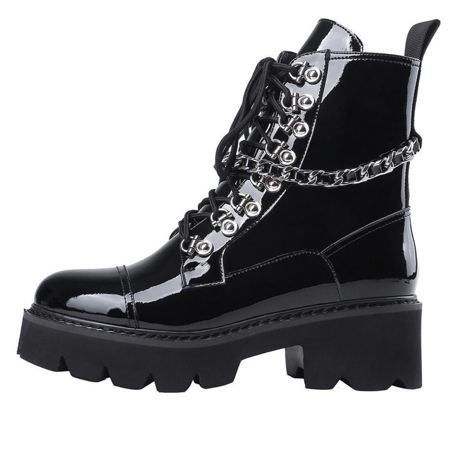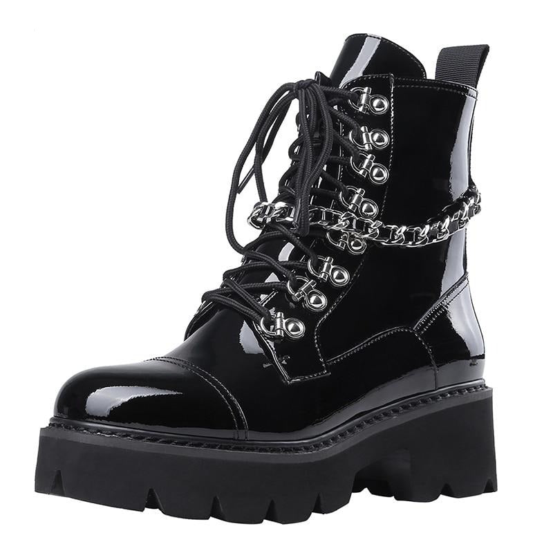 Con un paio di stivali gotici per donna, avrai il tocco finale che darà un'armonia completa al tuo look gotico. Con il suo materiale in similpelle, la sua ampia e spessa suola resistente e la punta della scarpa rotonda, sarà piacevole da indossare durante la camminata. Una catena metallica decorativa è stata aggiunta per dare più estetica provocante.