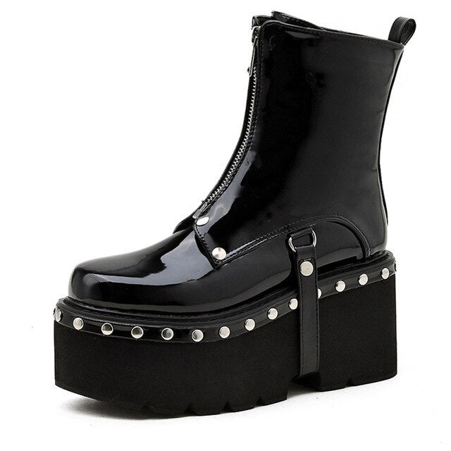 Se cercavi un paio di stivali gotici per donna originali, sei nel posto giusto! Possiedono una spessa suola di gomma nera. Sopra, sono decorati con borchie di metallo emblematiche della moda gotica. Per avere un'estetica unica e un'efficacia ottimale, gli stivali possiedono una chiusura lampo zip, che permetterà di toglierli e metterli facilmente e rapidamente.